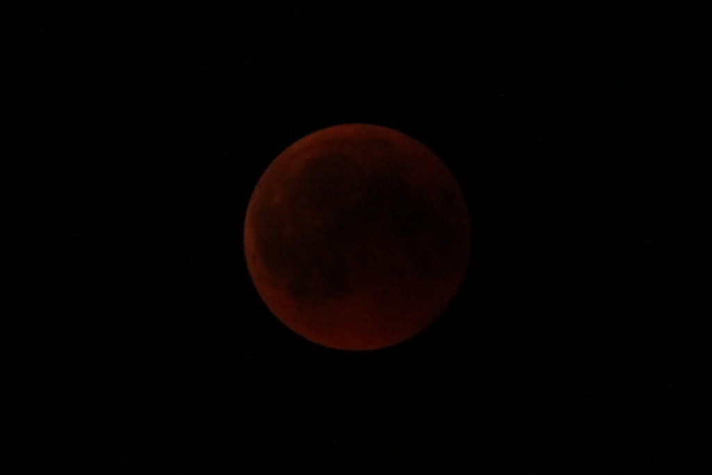 W nocy z 27 na 28 lipca 2018 roku miało miejsce całkowite zaćmienie Księżyca. Wybraliśmy się więc ze znajomymi na hałdę w Kostuchnie (dzielnica Katowic), by stamtąd obserwować to niecodzienne zjawisko astronomiczne. Po raz pierwszy w życiu postanowiłem skierować aparat w stronę naszego naturalnego satelity i spróbować dokonać fotodokumentacji tego zaćmienia. Było to również pierwsze w moim życiu świadome korzystanie z aparatu w całkowicie manualnym trybie.
