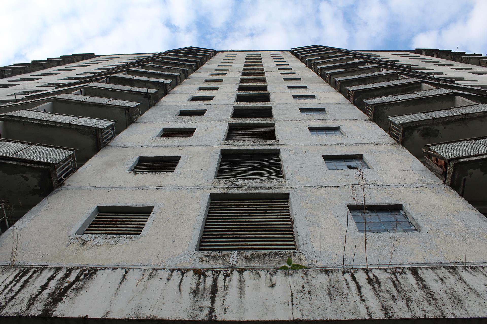 Te wysokie na 16 pięter budynki zyskały swój przydomek ze względu na styl, który podobno miał być inspirowany zabudowaniami w Kraju Kwitnącej Wiśni. W pobliżu siebie stoją dwa takie bloki. My stoimy akurat pod tą stojącą całkiem na północno-zachodnim skraju Prypeci.