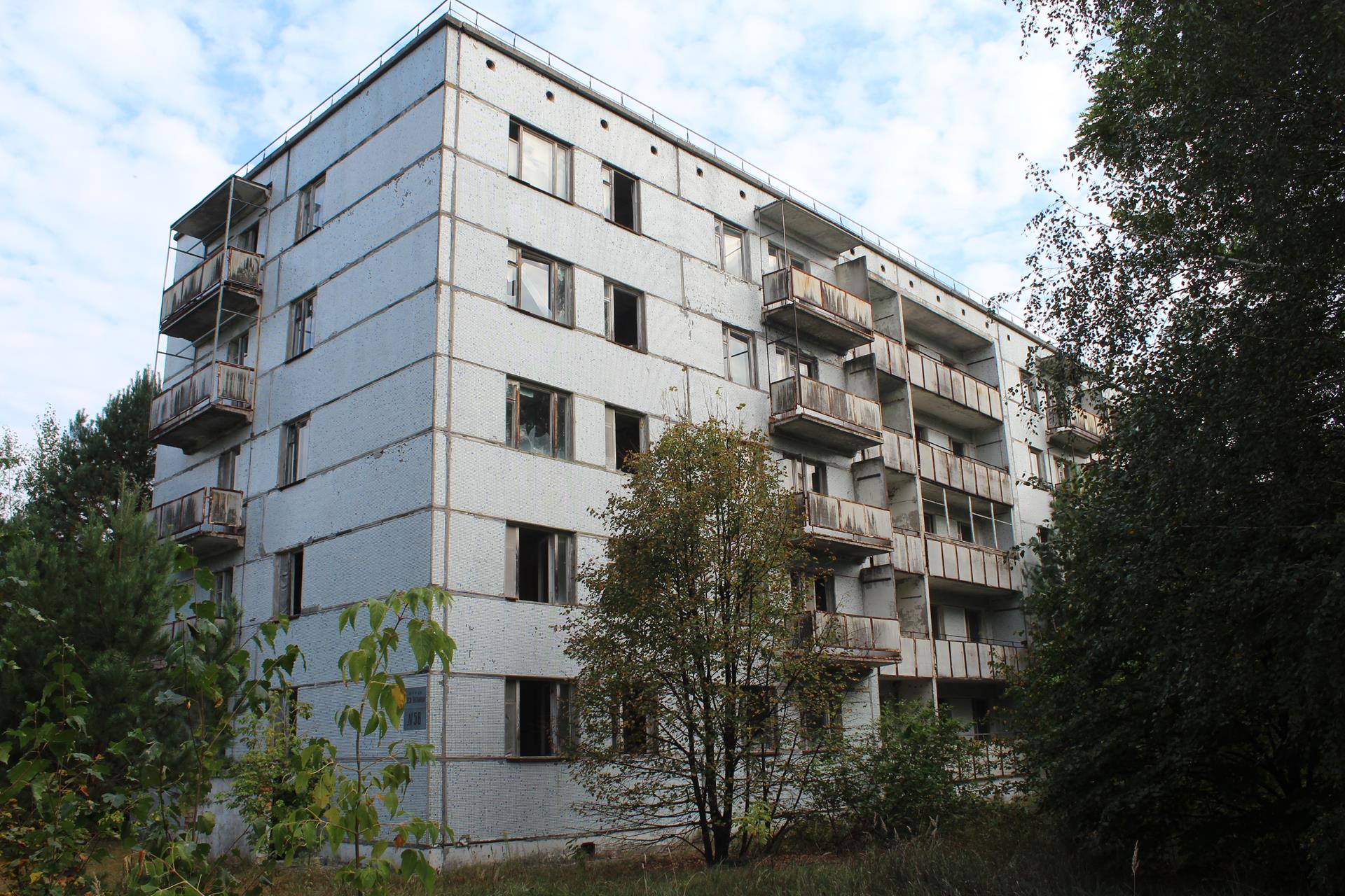 Objeżdżamy Prypeć od zachodu i docieramy do najwyższych budynków mieszkalnych w mieście.