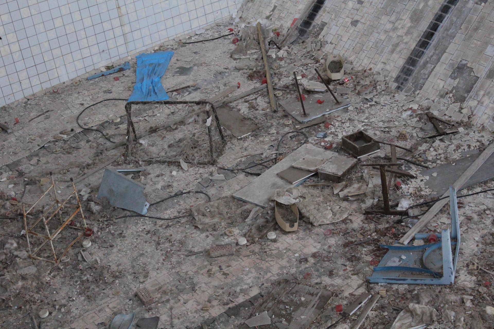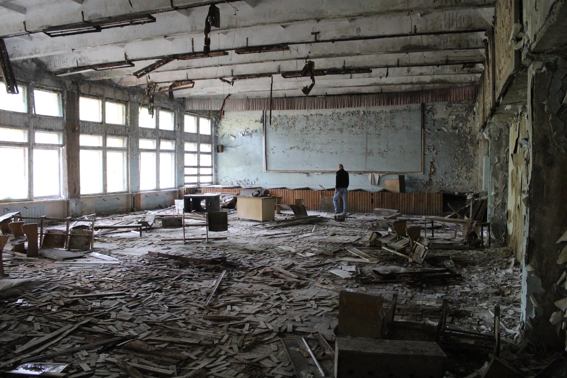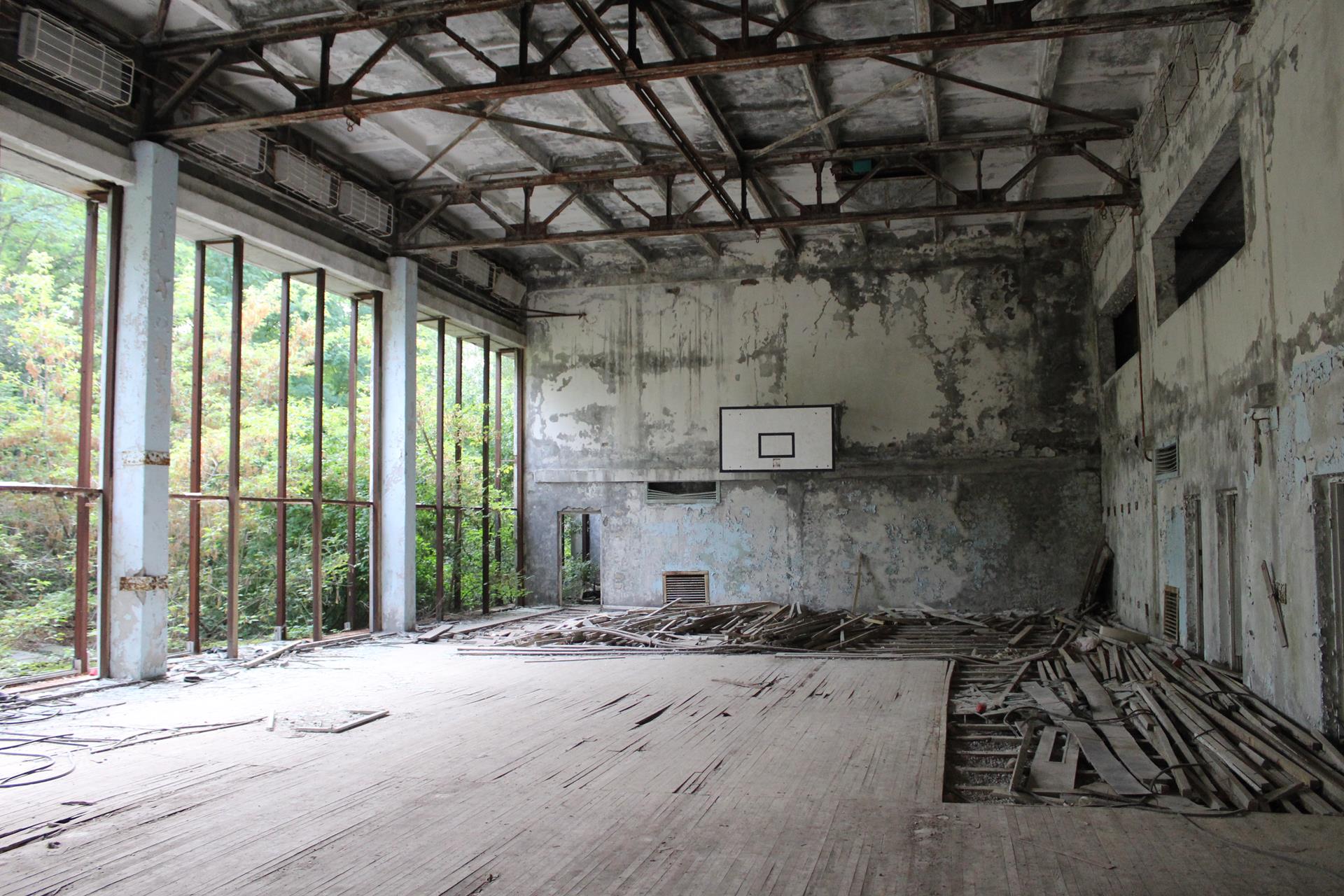 Szkoły numer 4 również nie odwiedziliśmy. Podobno jest w najgorszym stanie technicznym ze wszystkich wciąż stojących w całości szkół w Prypeci.