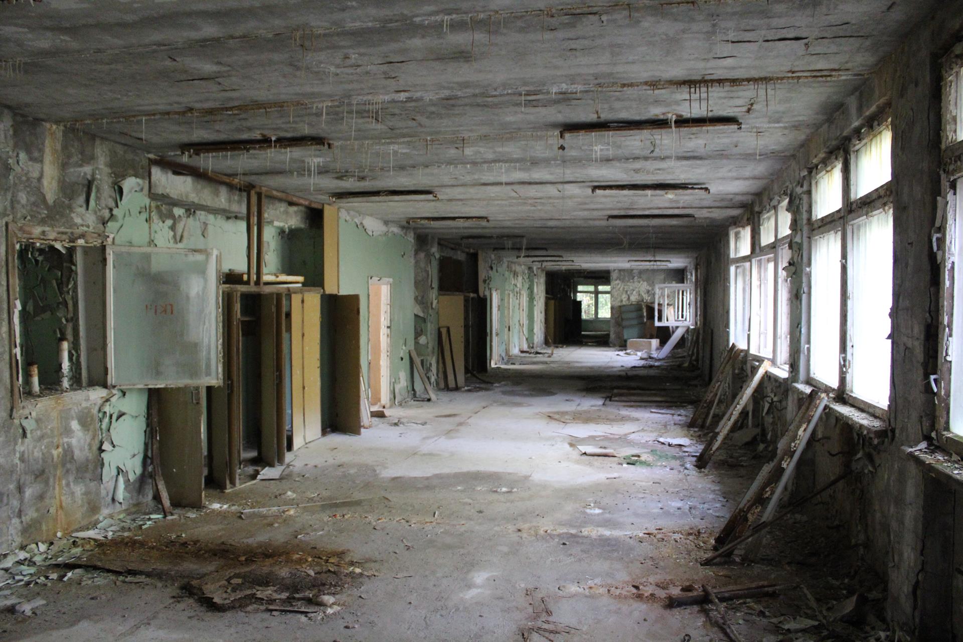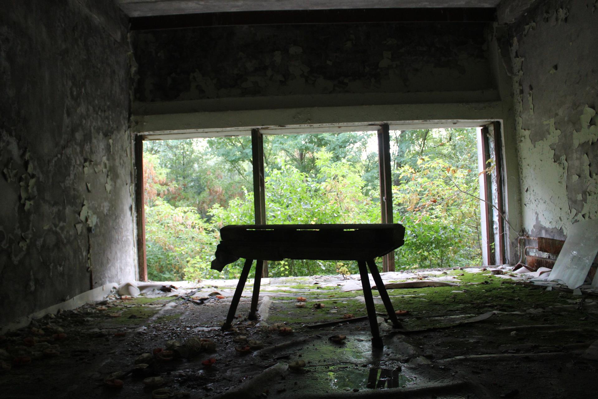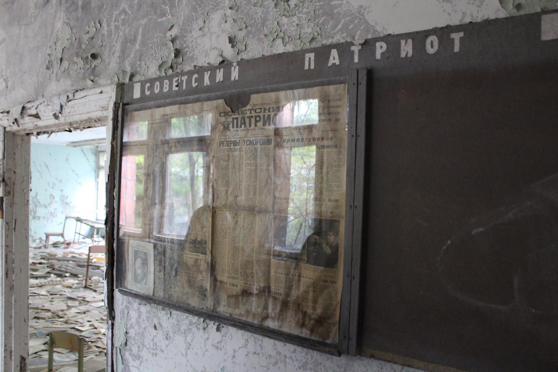 Szkoły numer 4 również nie odwiedziliśmy. Podobno jest w najgorszym stanie technicznym ze wszystkich wciąż stojących w całości szkół w Prypeci.