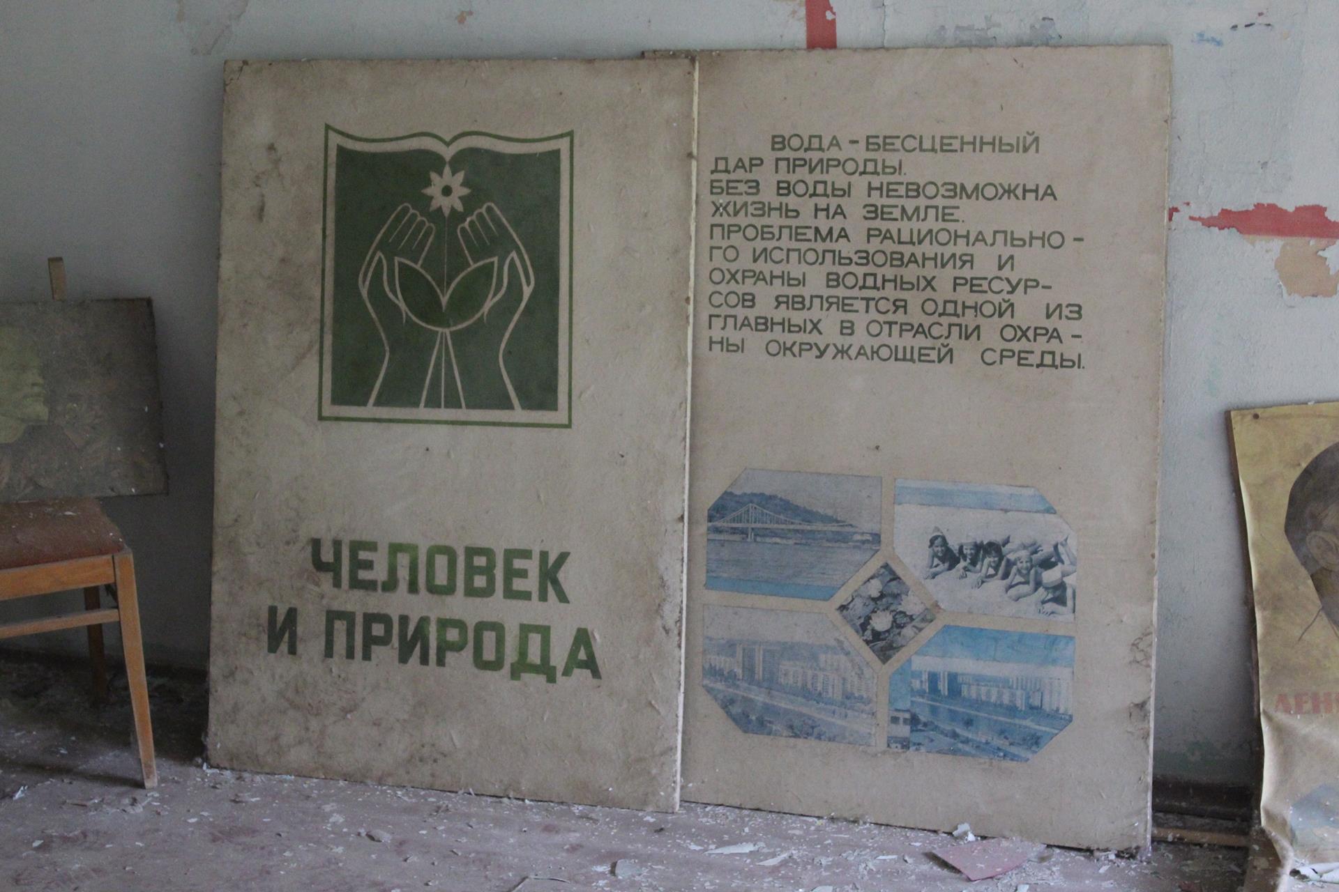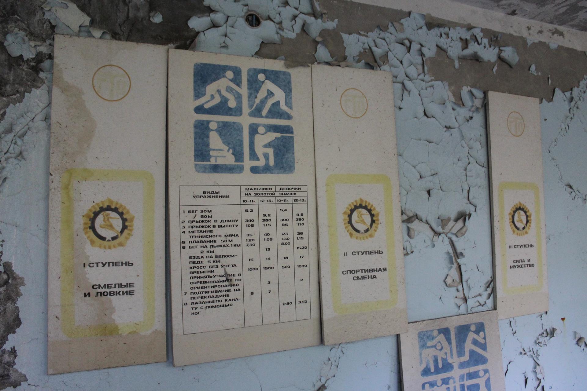 Chodząc po mieście nie można nie natknąć się na wszelkiego rodzaju „objawy” sowieckiej propagandy, takie jak różnorakie napisy czy emblematy. Prypeć była ikoną radzieckiej myśli urbanistycznej i tak była przedstawiana. O czym wkrótce się przekonamy.