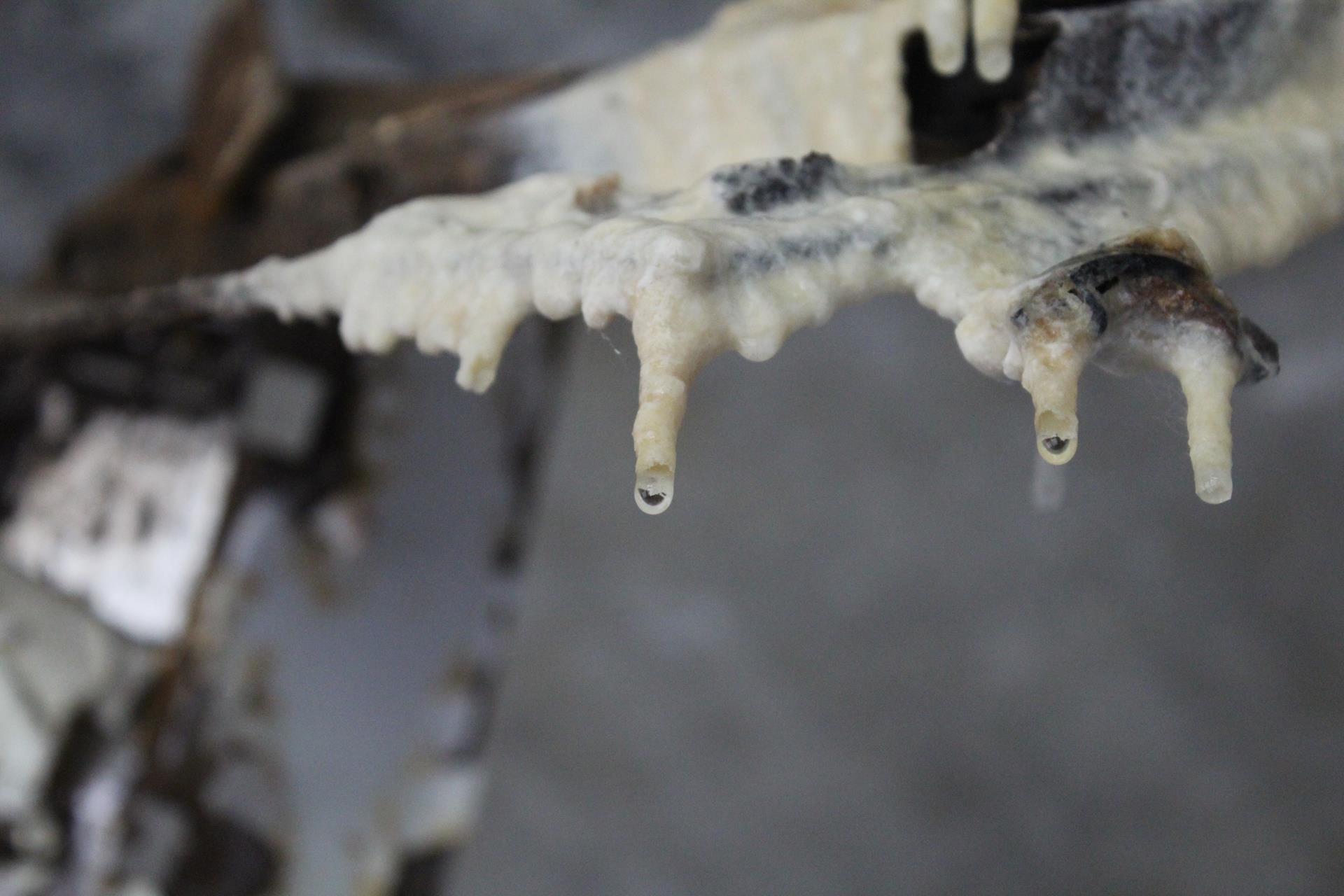 Ciekawa rzecz. Woda wypłukuje coś (wapno?) z konstrukcji budynku i tworzy stalaktyty…