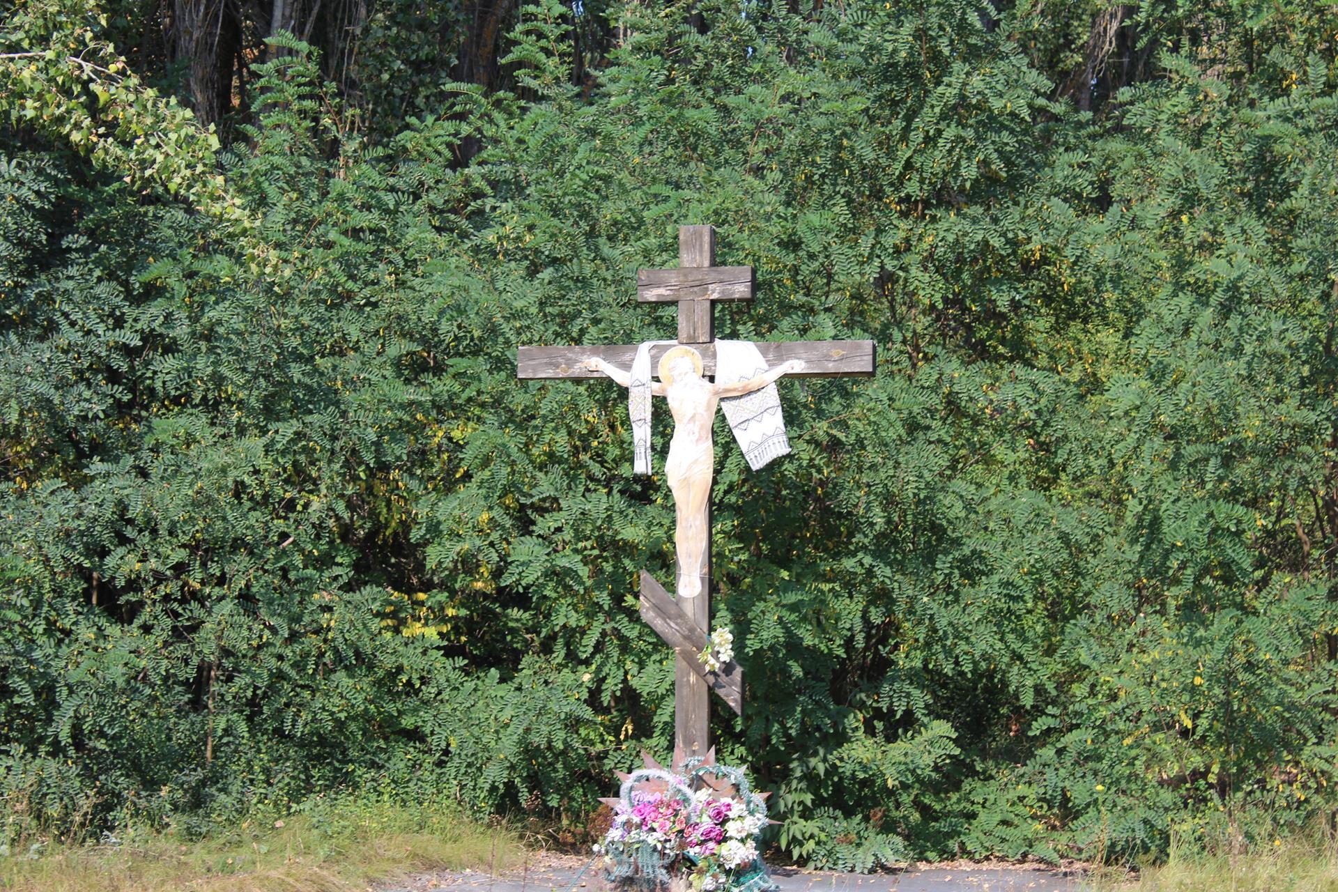 Krzyż przydrożny w Prypeci w pobliżu południowego wjazdu do miasta.