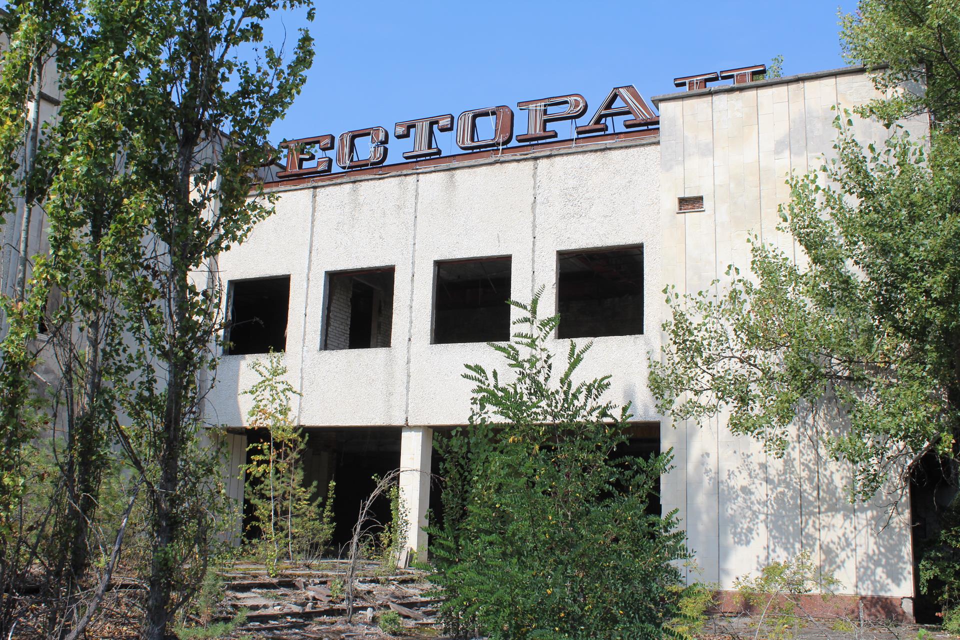 Napis „Prypeć” na budynku kawiarni