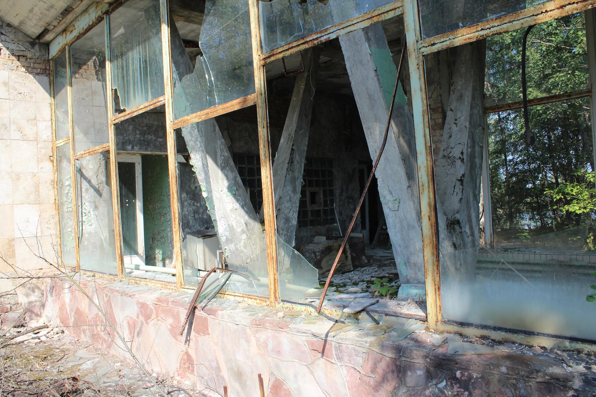 Szkoły numer 4 również nie odwiedziliśmy. Podobno jest w najgorszym stanie technicznym ze wszystkich wciąż stojących w całości szkół w Prypeci.