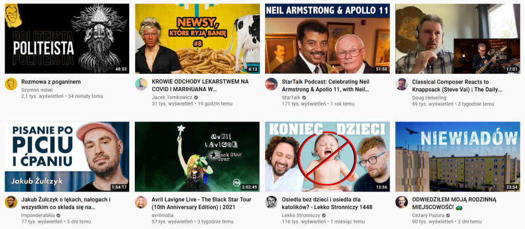 Zerknij na swoją stronę główną portalu YouTube i przeprowadź podobną analizę. Jest to naprawdę ciekawe ćwiczenie, które może nam dużo powiedzieć o nas samych.