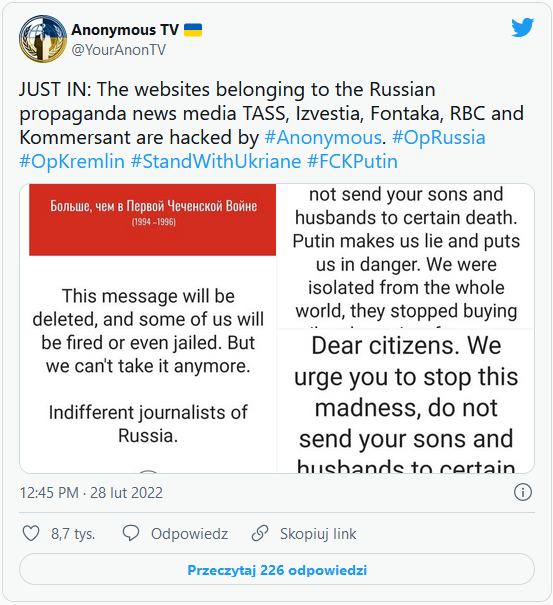 Wojna w cyberprzestrzeni – Anonymous vs reżim Putina