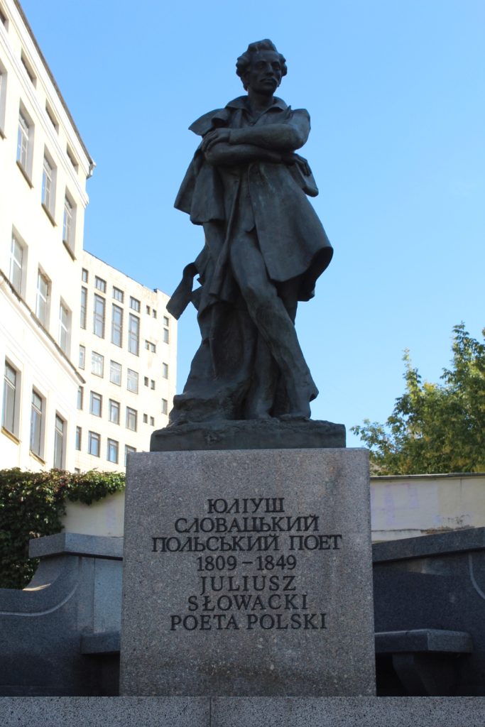 Przed wejściem spotykamy pomnik naszego poety Juliusza Słowackiego.