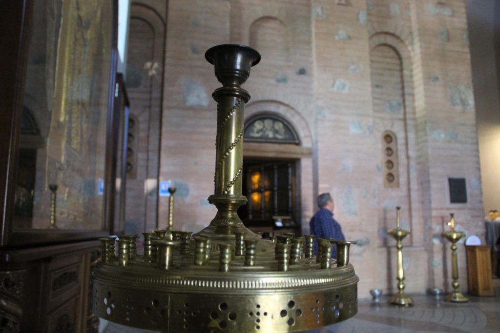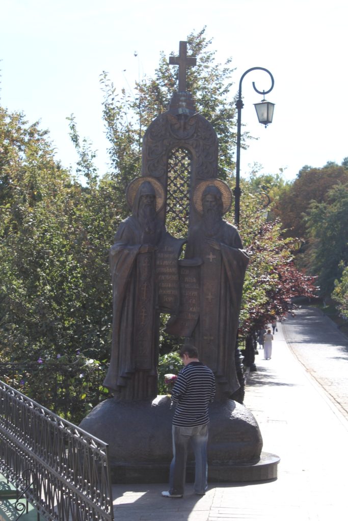 Przechodzimy do tzw. Ławry dolnej. W korytarzach można zobaczyć zmumifikowanych zakonników, jednak fotografowanie tam jest zabronione (a i widok to niezbyt atrakcyjny). Po drodze jednak mijamy krzyż i pomnik świętych Cyryla i Metodego – apostołów wschodu.