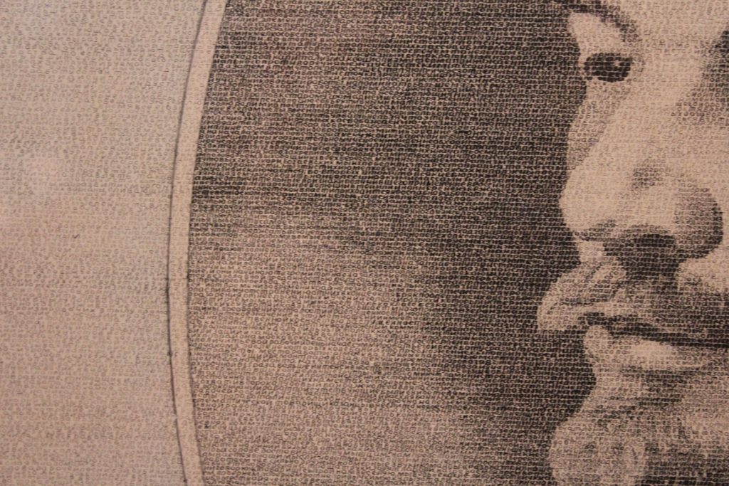 Wchodzimy do muzeum mikrominiatur. Jest tam wiele niezwykle ciekawych dzieł niezwykle trudnych do sfotografowania (np. grawery wykonane na ludzkim włosie przeciętym wzdłuż(!)). Zachęcam do odwiedzenia osobiście. Ja wybrałem jeden smaczek – portret Lenina wykonany za pomocą zręcznego operowania czcionką. Tekstem użytym do powstania portretu jest fragment dzieła samego portretowanego.