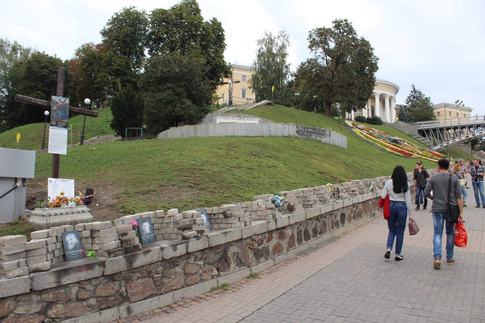 Plac Niepodległości jest przedzielony w poprzek ulicą Kreszczatyk. Idąc w górę po lewej stronie znajduje się wystawa upamiętniająca ofiary Euromajdanu.