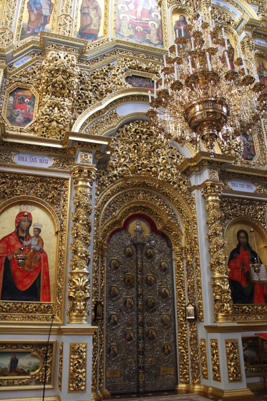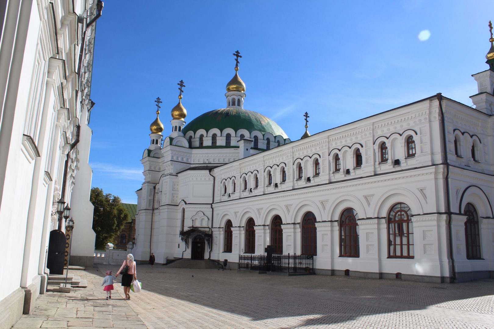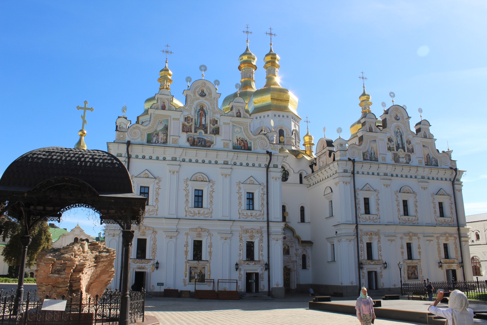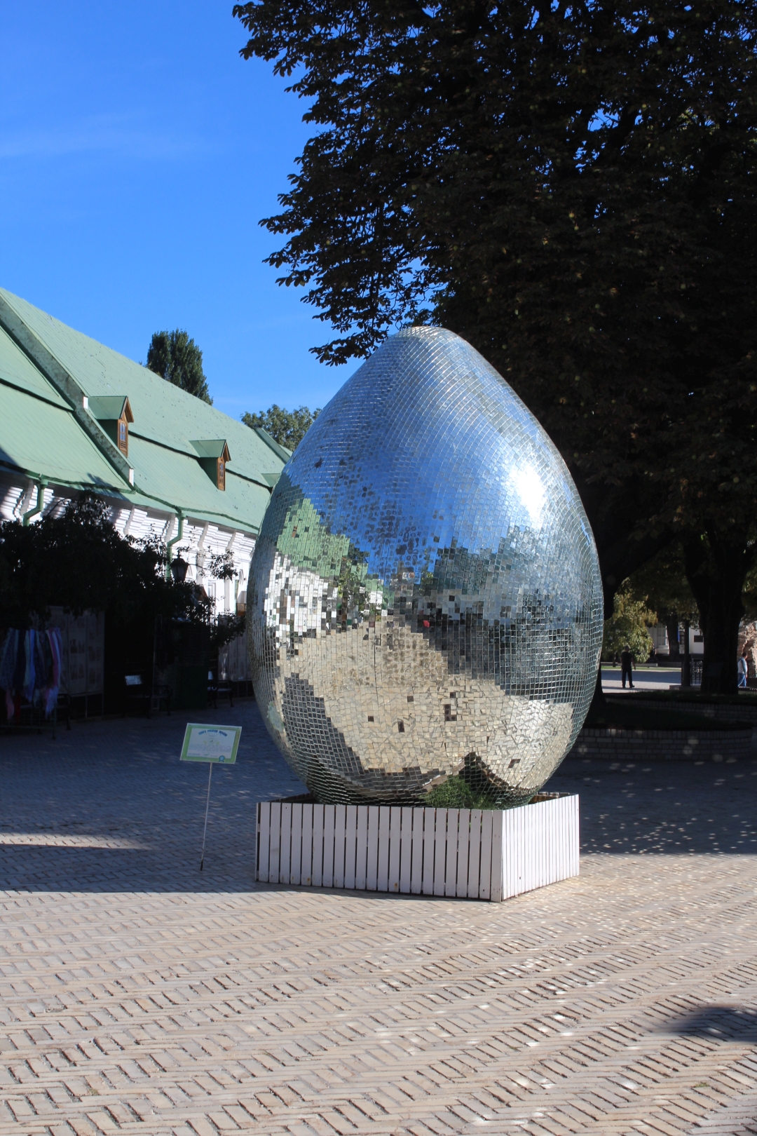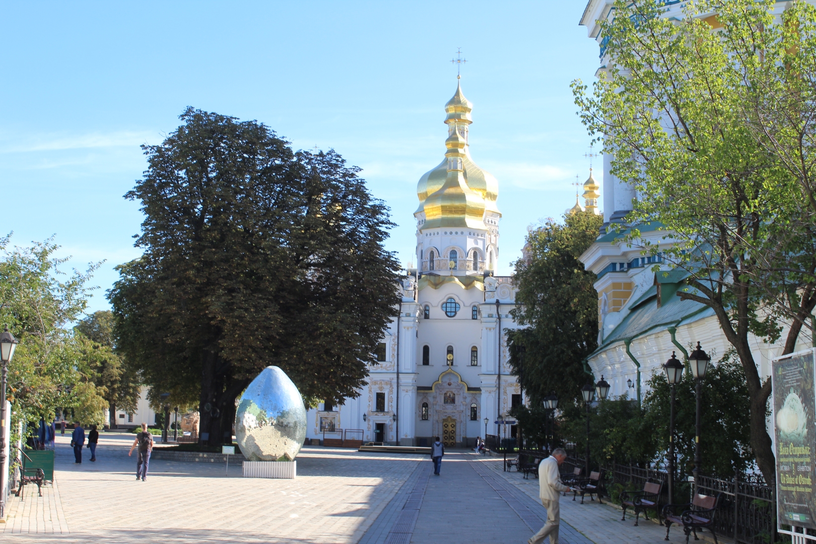 Wchodzimy na teren kompleksu przez Cerkiew Nadbramną św. Trójcy i przechodzimy obok wielkiej ławrskiej dzwonnicy. Przy wejściu zaskakuje nas jajo wykonane z luster.