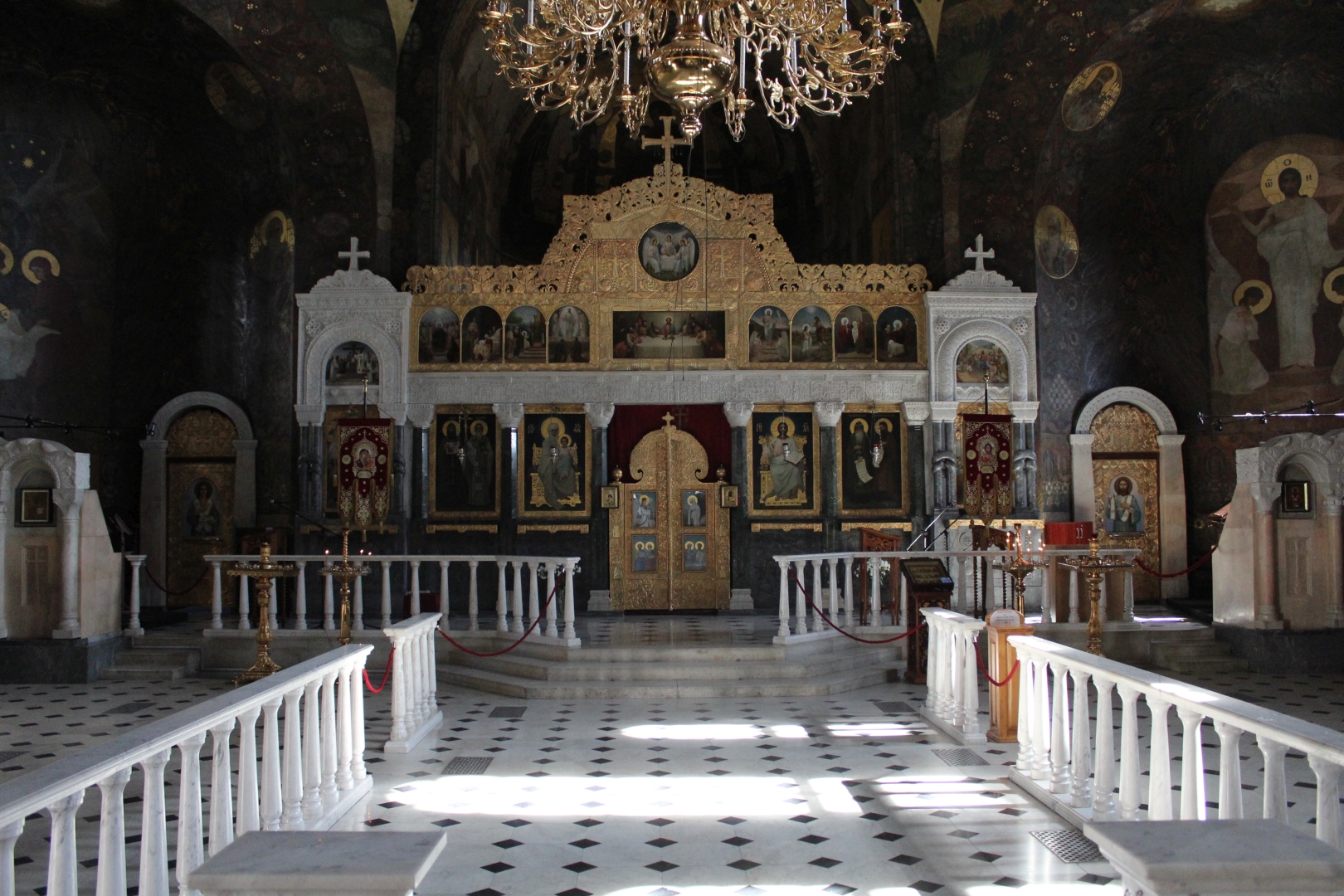 Przechodzimy do tzw. Ławry dolnej. W korytarzach można zobaczyć zmumifikowanych zakonników, jednak fotografowanie tam jest zabronione (a i widok to niezbyt atrakcyjny). Po drodze jednak mijamy krzyż i pomnik świętych Cyryla i Metodego – apostołów wschodu.